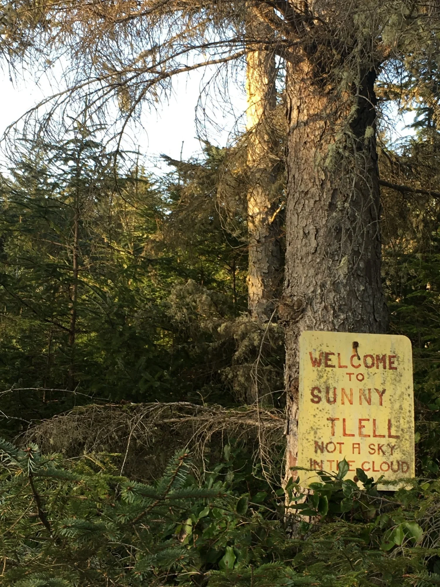 The 30km ride went quick, greeting me to my stop for the night was a sign saying; “welcome to sunny Tlell! Not a sky in the cloud!” I had to do a little loop just to check and make sure I was reading that right. The irony was perfect, it was in fact, a day without a cloud in the sky. A little further on from; “Tlell unincorporated” was a campground. I had forgotten to fill my 3L bladder for cooking water when I was on the ferry and started to worry about finding half decent water. I weighed my options, figuring Tlell must have something, not knowing it is essentially Naikoon provincial park and the odd home.